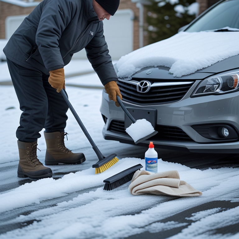 - trzymaj w samochodzie zestaw zimowy: miękka szczotka teleskopowa, plastikowa skrobaczka, rękawice, odmrażacz 200–300 ml,